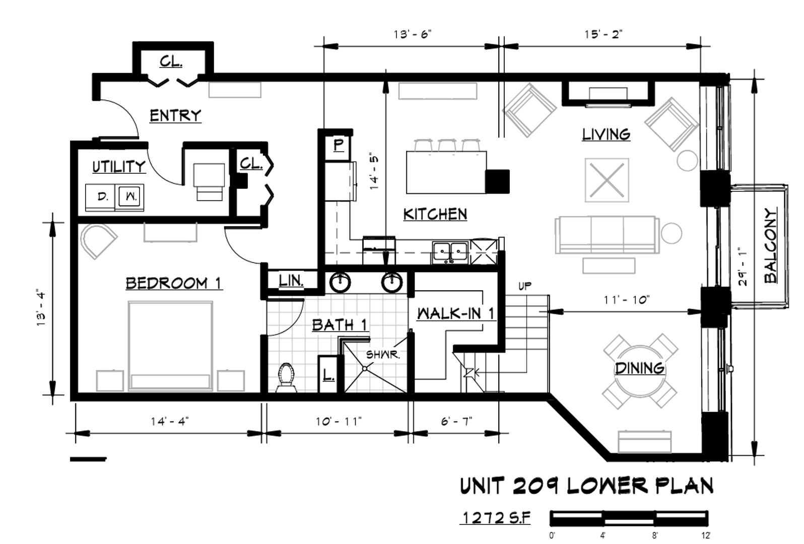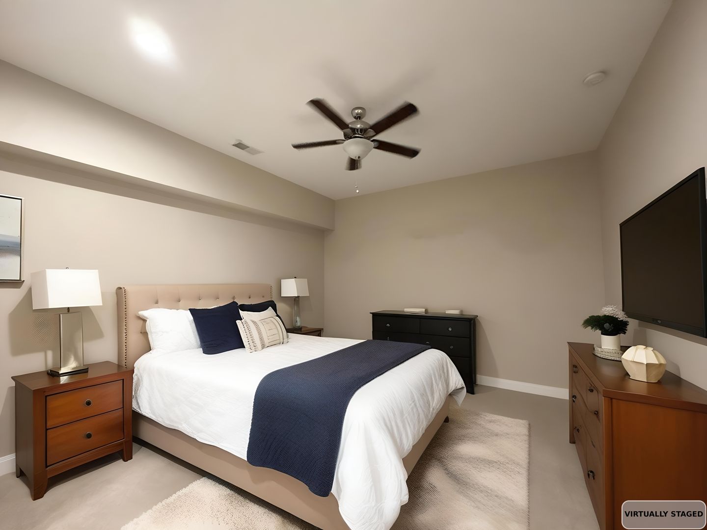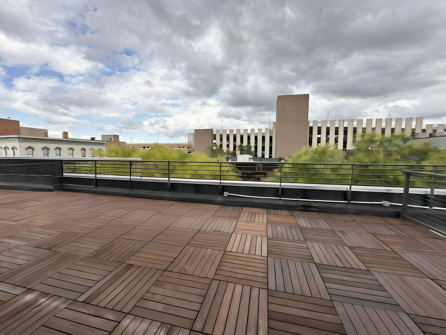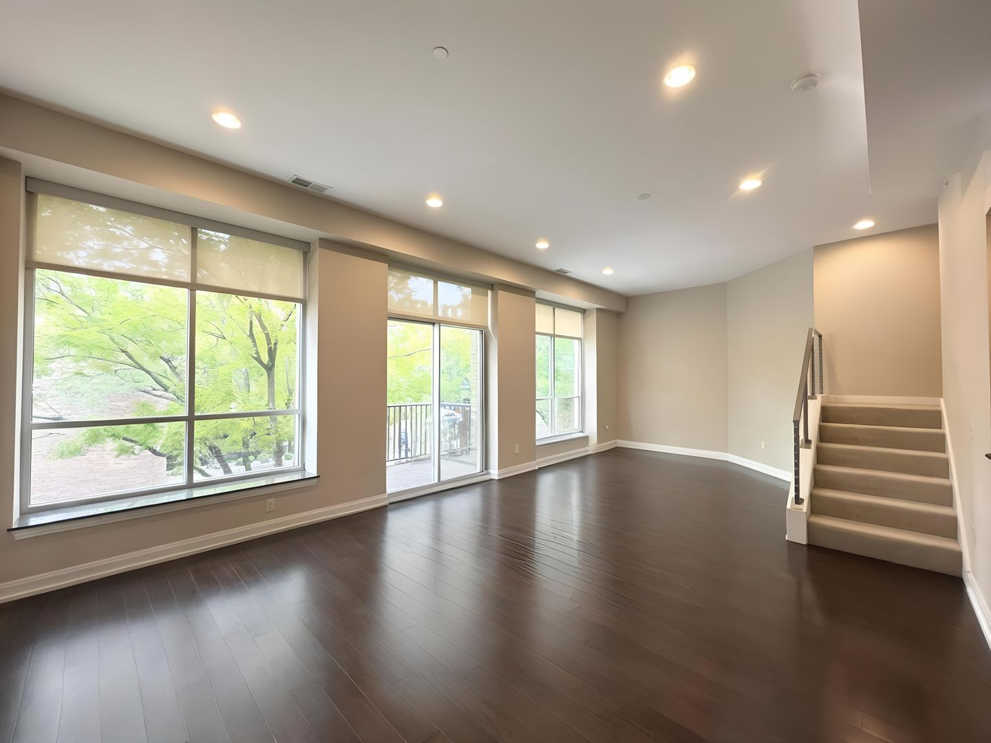 The apartment features wood flooring, ceiling fans, and floor-to-ceiling windows that provide a stunning view of the Kalamazoo Mall. The customizable walk-in closets and den/office area offer ample space for your needs. The kitchen is equipped with quiet close cabinets and stainless steel appliances providing a luxurious feel. The apartment is also equipped with a full size washer and dryer for your convenience.